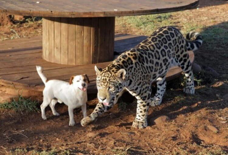 Los jaguares pueden ser solitarios, cazadores por naturaleza y carnívoros por excelencia; pero eso no les quita que también puedan hacer amigos, así sean más pequeños y de otra especie, como Bullet.
