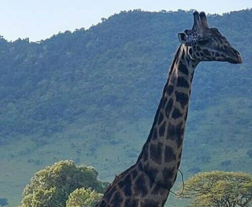 La jirafa de esta historia andaba por un sector de la zona Masai y en su cuello tenía una especie de collar hecho con alambres que la apretaban muchísimo. Lo más probable es que se trataba de una trampa hecha por cazadores furtivos.